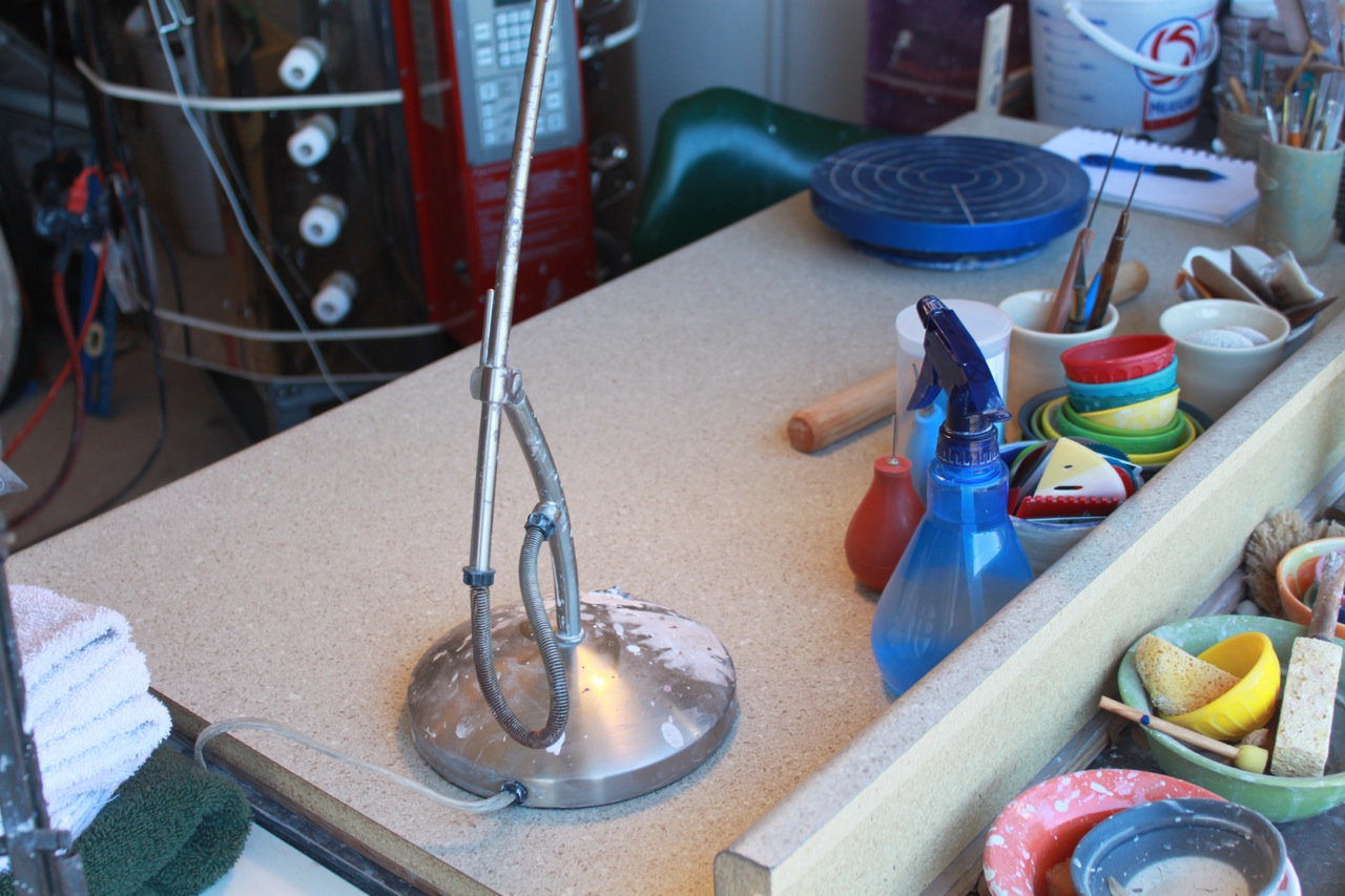 And it works amazingly well! It’s a laminated kitchen counter segment, and it fits perfectly on top of my 6′ folding table that I use as a workspace. When I am ready to go back to red stoneware, I will box up all these porcelain tools and store the counter against the wall. I have duplicate tools for red stoneware, so there is no cross-contamination. I love discovering simple solutions!