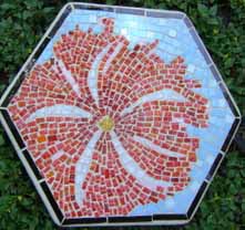 Since she retired, she’s been able to turn her attention full-time to her artistry. Her journey has fascinated and inspired me. She started making mosaic art pieces to place in her garden. It’s wonderful! Here’s one of her amazing stepping stones: