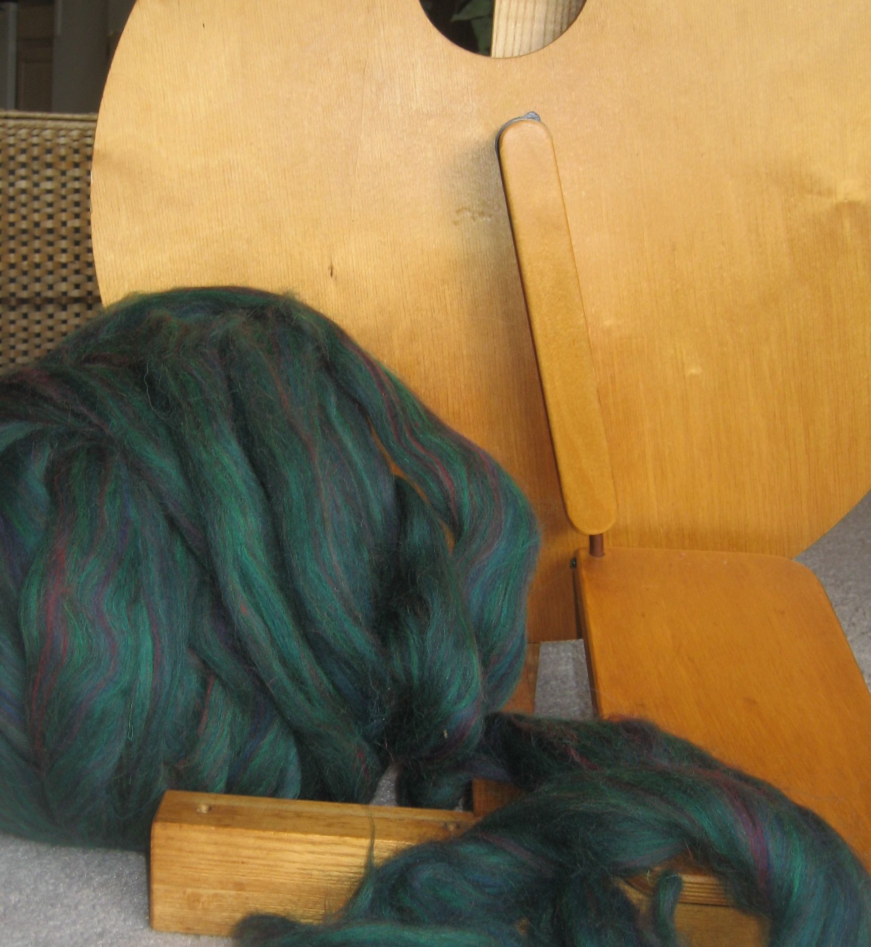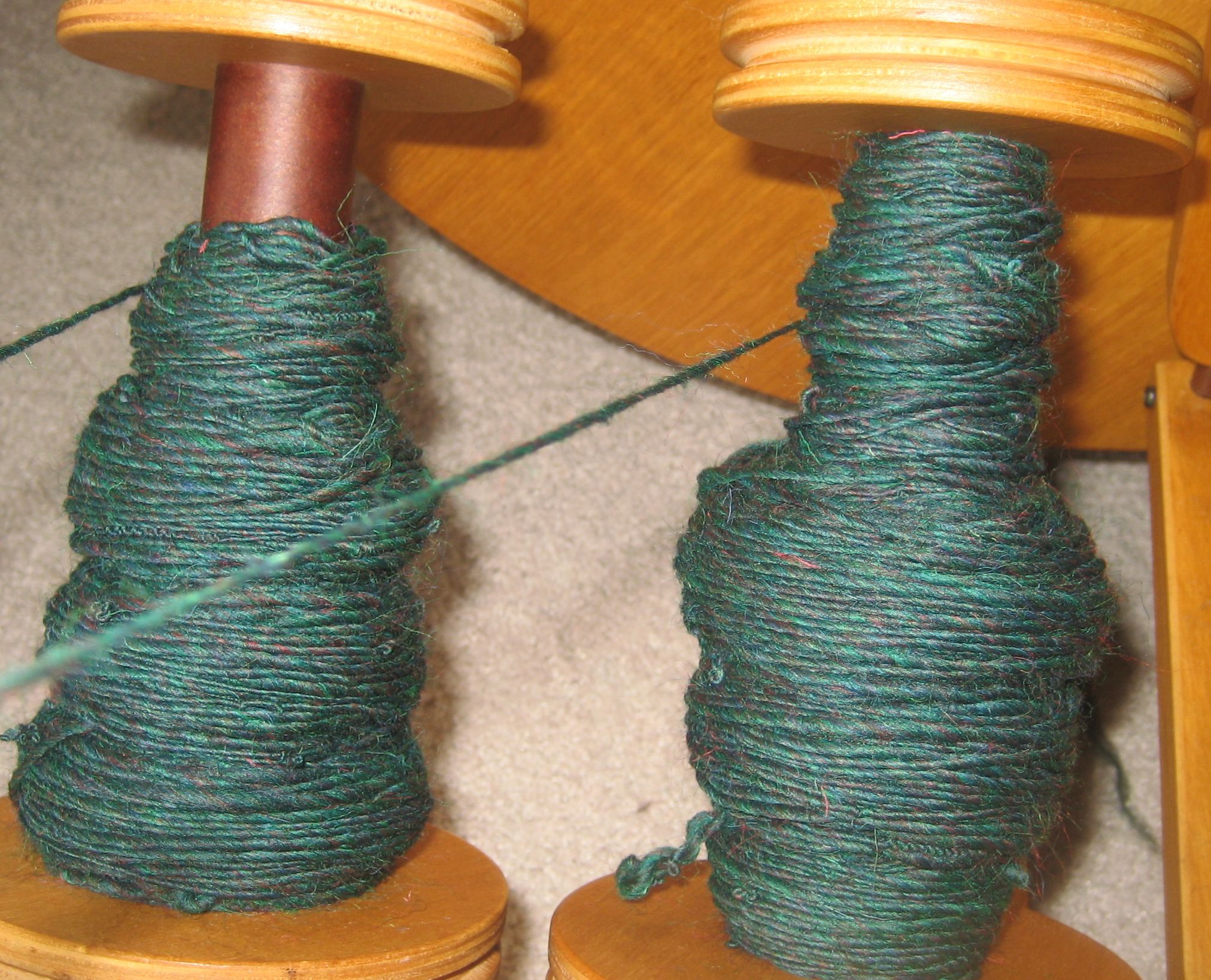 As I come to the end of the marvelous green bump that MonChere brought me on Mother’s Day, I have tangible evidence of the truth of Arabella’s statement. The green bump (that’s what a large roll of roving is called) spun into about 9 skeins. Oh, the difference between the first skein and the last!