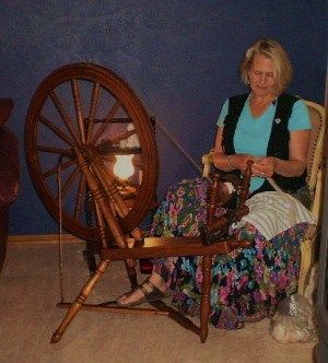 Here, Arabella is rinsing some Corriedale roving that she dyed while it was “in the wool.”